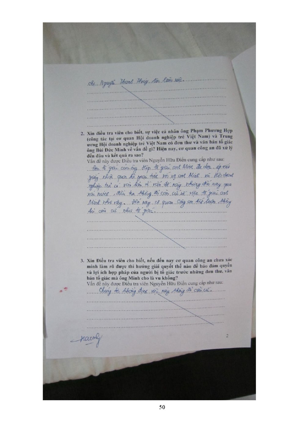 | Biên bản xác minh trang 1,2,3 tại Công an Quận Hoàn kiếm. Biên bản này cộng với các đơn cảu Ông Cường và Hợp do luật sư Hải rút về là căn cứ chắc chắn để kiện hai Ông Cường và Hợp. |